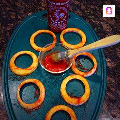 Brush the Sriracha sauce liberally on each of the onion rings.