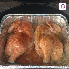 Apply Meat Church Deez Nuts Pecan rub to all sides of the chicken; underneath and on top of the skin. We also recommend working your hands underneath the chicken skin and applying rub directly on the meat. This will give your eaters a really flavorful bite even if they don't get any skin!