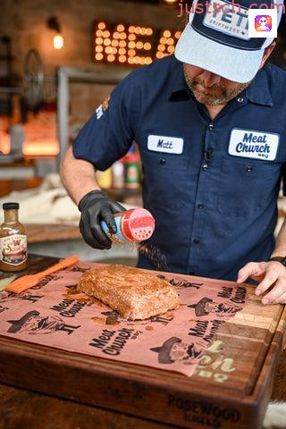 Season with with Meat Church Holy Gospel All Purpose BBQ Rub.